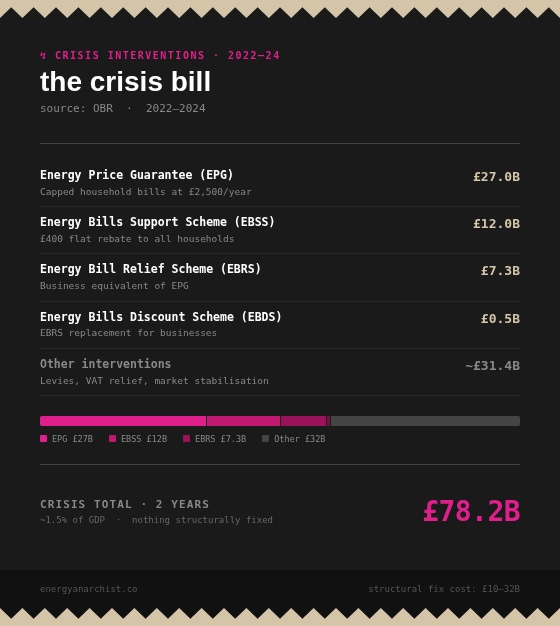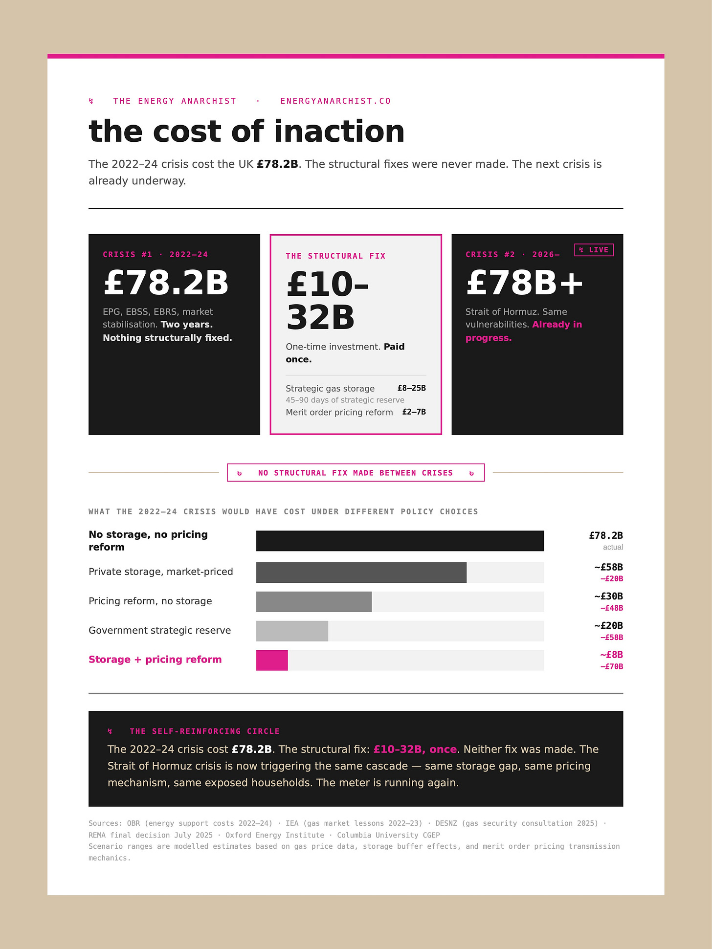 In 2022 - 24, the UK spent £78B managing the consequences of its energy policy. It’s safe to assume that the consequences of the US and Israel invasion of Iran will cost *at least* the same, because nothing has structurally changed.