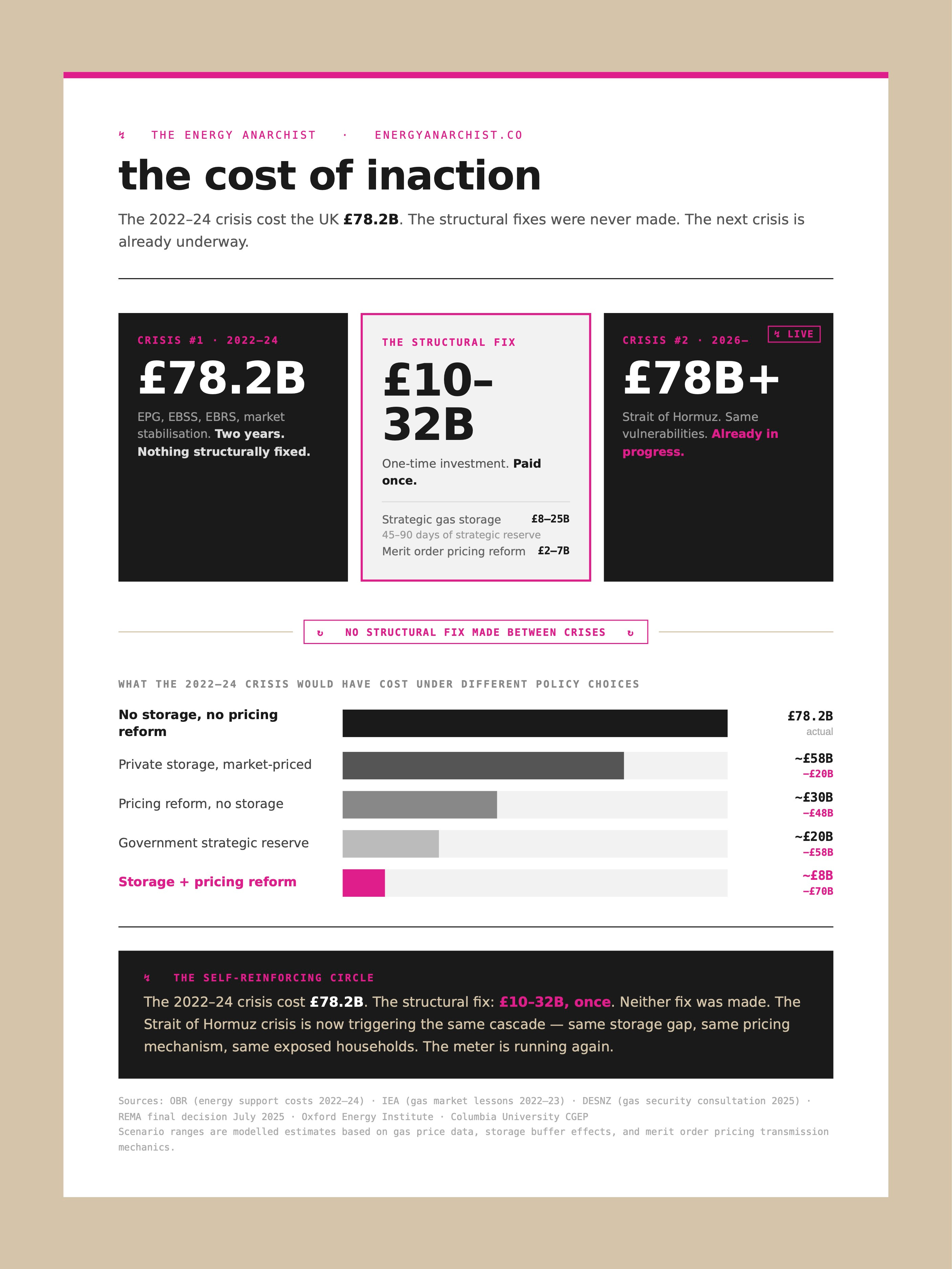 If the UK tackled both storage and pricing reform, we would spend about £32B and save ourselves about £70B in panic spending every time there’s an energy crisis.
